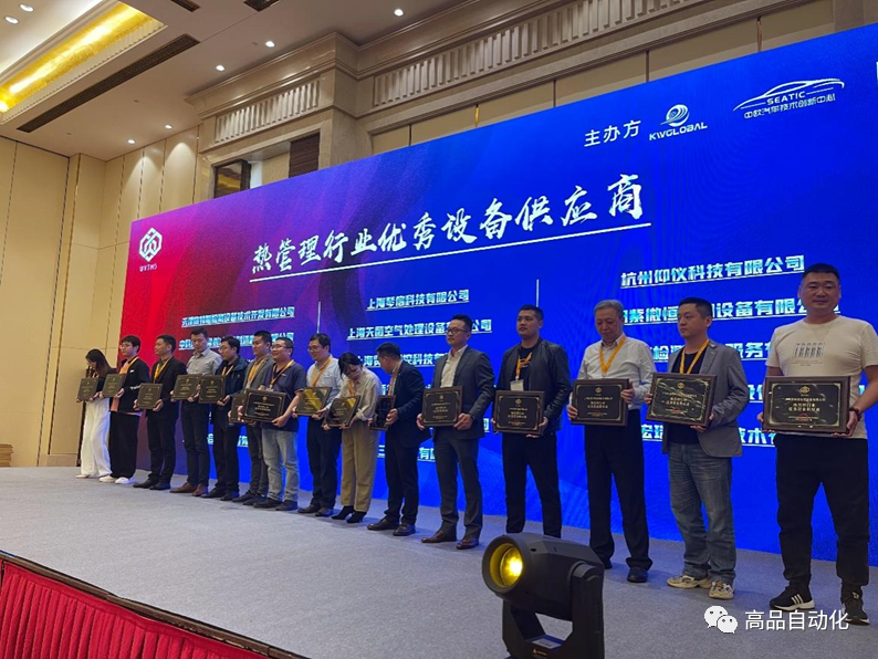 會上,高品自動化榮獲“熱管理行業(yè)優(yōu)秀設備供應商”榮譽稱號,我司銷售中心總經(jīng)理郭俊先生上臺領獎。