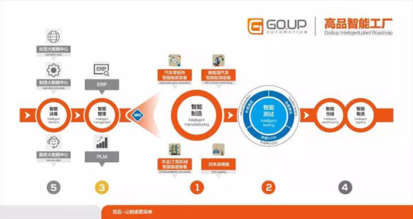 基于現(xiàn)有裝配測(cè)試技術(shù)基礎(chǔ),高品提出“智能決策、智能管理、智能制造,智能測(cè)試,智能倉(cāng)儲(chǔ)物流”的智能工廠五步走技術(shù)路線。
