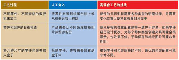 高混合生產(chǎn)環(huán)境可能難以快速改進(jìn)。理想的改進(jìn)將涉及多條生產(chǎn)線,但適應(yīng)多個工藝所需的投資可能非常大,足以顯著降低投資回報率。傳統(tǒng)的自動化無疑是大批量或快速循環(huán)生產(chǎn)更有效的解決方案。